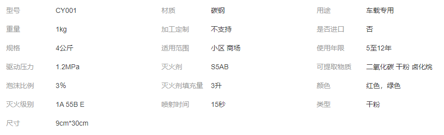 手提便攜式 碳鋼材質 噴力強 射程遠 車載專用干粉滅火器 1kg