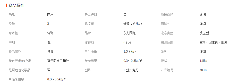 東方雨虹 新材料MC02聚脲廚衛(wèi)免拆防水涂料廠家 透明防水材料批發(fā)