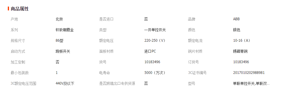 ABB 軒致系列 銀色 開關(guān)插座面板批發(fā)單開雙控五孔插座網(wǎng)線插